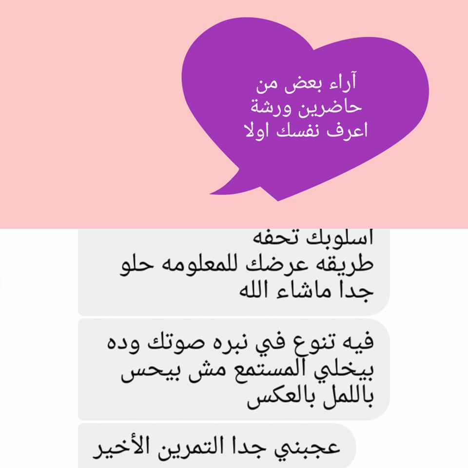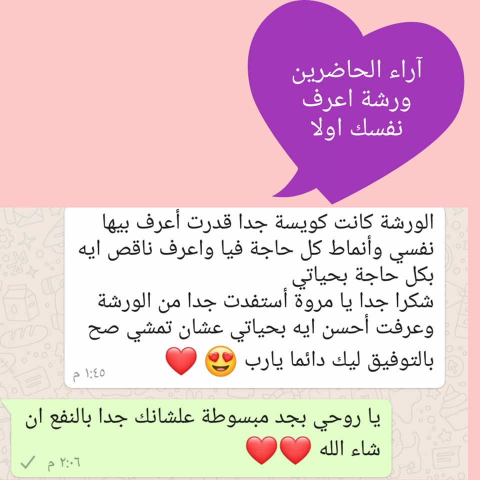 أنا مروة ابراهيم صاحبه فكرة تطويرالذات والوصول للاهداف أنا معاك علشان اساعدك تتطور ذاتك وعلاقتك بنفسك وبشريك حياتك والمحيطين بيك وتوصل لاهدافك بكل سهولة وده شغفي بساعدكم عن طريق جلسات peat لتحرير المشاعر أو عن طريق الورش والكورسات اللي بقدمها منها ورشة اعرف نفسك اولا كورس قوة التفكير الايجابي أنا ممارس ل تقنية peat للعلاج النفسي الشعوري معتمدة من مدرسة spiritual technology وحاصلة علي كثير من الكورسات والدورات منها: الثقة بالنفس والكايرزما اختيار شريك الحياة اهداف الزواج جذب شريك الحياة ادراة الخلافات الزوجية التواصل الصحيح الاحتياجات الانسانية وكيفية اشباعها قوة التفكير والتفكير الايجابي قانون الجذب يعني إيه peat تعرف أن فى تقنيات تم أبتكارها يطلق عليها (PEAT) تعتبر الأقوى و الأكثر فاعلية فى علاج الصدمات و المخاوف و العلاقات؟ و تعتبر قوتها في أنها تعمل على كل ما هو متخزن فى العقل اللاواعى. سحرها أن صدمة أو خوف أو مشاكل فى العلاقات أو غيره بتعانى منها من سنين بيتم علاجها و كأنها لم تكن. تقنيات الـ PEAT تعتبر أقوى و أحدث التقنيات للعلاج الشعورى لمبتكرها الطبيب النفسى و الكاتب zivorad slavinski و هى بتعمل مع العقل اللاواعى لذلك نتائجها قوية جداً و سريعة. طيب اي مشاكل الي الي هحتاج اعمل جلسات عليها بتقنيه peat بتعلاج العلاقات الاسرية وغيرها من العلاقات بتعلاج مشاكل الارتباط والزواج بنحتاجها لتخلص من مخاوف الزواج بنقدر نحدد فيها قناعاتك السلبيه عن الزواج من خلال لجلسات بنقدر ننسفها ونعرف المعتقدات السليمة جلسات لتتخلص من الم العلاقات السابقة زي الفقد والانفصال جلسات لفك التعلق بشريك الحياة او اي شخص جلسات لفك التعلق باهداف ف حياتنا جلسات لتقدير الذات جلسات لعلاج الرفض ( رفض الشكل والجمال وشكل الجسم ) جلسات لعلاج الاحتياجات واشبعها زي الحب والاهتمام والتقدير جلسات الثقه بنفس جلسات لعلاج الصدمات (الفقد والموت ) جلسات لعلاج الفوبيات ( الخوف من المرتفعات / الخوف من الكلاب / الخوف من الموت وغيرها ) جلسات لتعديل سلوك الغير مرغوب فيه ( العصبيه التوتر الخوف اكل الاظافر التدخين وغيرها ) جلسات لتحرير المشاعر جلسات لعلاج الرهاب الاجتماعي لحجز الجلسات ومزيد من التفاصيل ضع كومنت أو تواصل معانا بإرسال رساله الى البيدج علي الفيس بوك https://www.facebook.com/%D9%85%D8%B1%D9%88%D9%87-%D8%A7%D8%A8%D8%B1%D8%A7%D9%87%D9%8A%D9%85-Marwa-Ibrahim-166504074002776/ او علي رقم 01005545989 او علي الواتس اب
